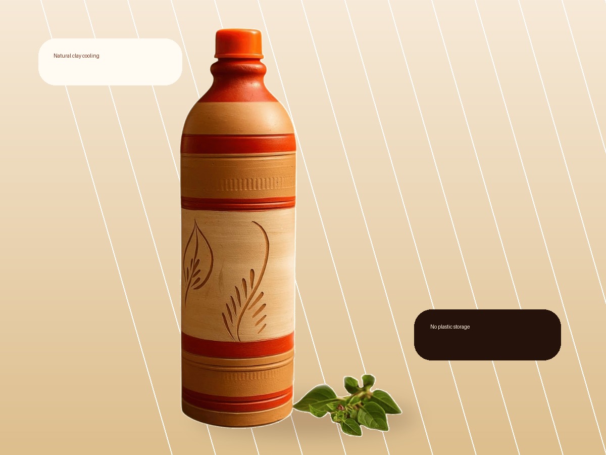 Clay bottles use the same simple idea as traditional matkas. Tiny pores allow slow evaporation from the surface, which can make the stored water feel pleasantly cool depending on airflow and humidity.